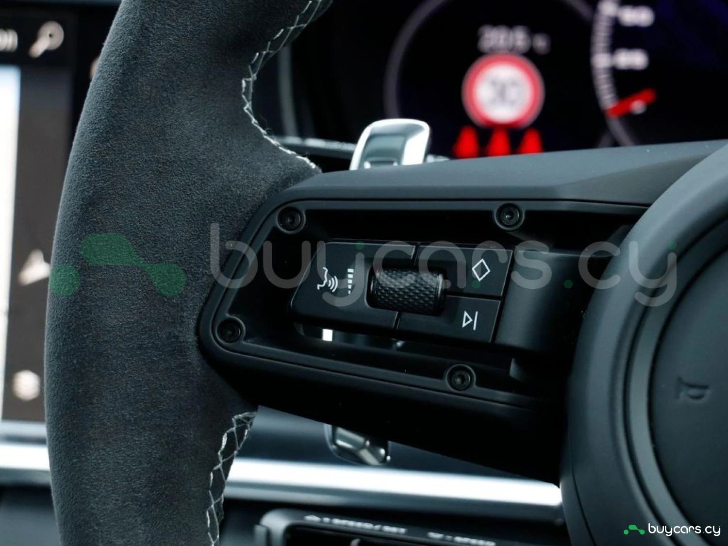 Производительность: Под капотом расположен высокопроизводительный двигатель, работающий в паре с 8-ступенчатой автоматической коробкой передач PDK, обеспечивающей мгновенные переключения передач и плавное ускорение. Адаптивная пневмоподвеска с системой Porsche Active Suspension Management (PASM) занижена на 10 мм, что улучшает управляемость и снижает крены кузова. Система Porsche Torque Vectoring Plus (PTV Plus) повышает сцепление с дорогой и устойчивость в поворотах. Спортивная выхлопная система с затемненными патрубками усиливает мощный звук двигателя.