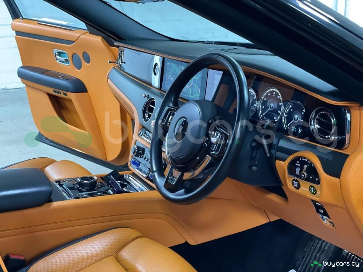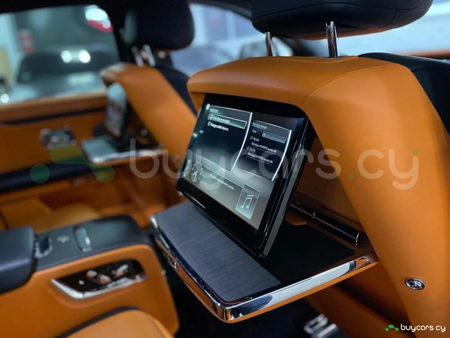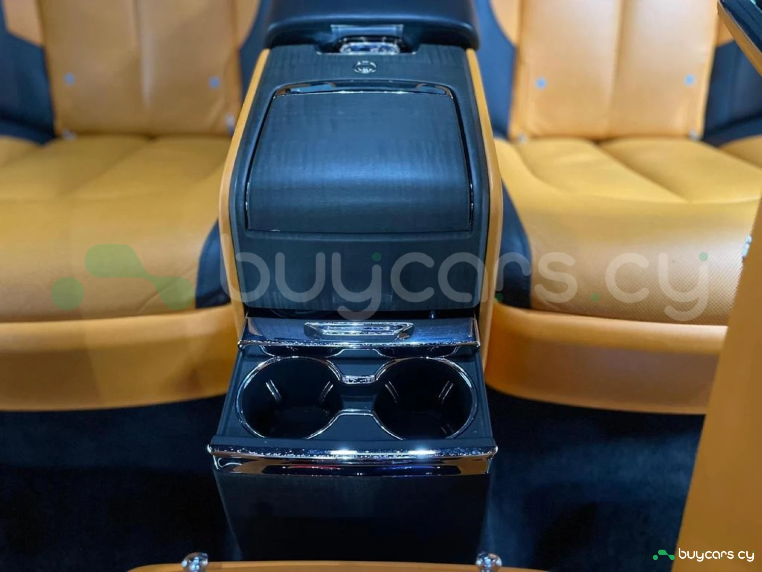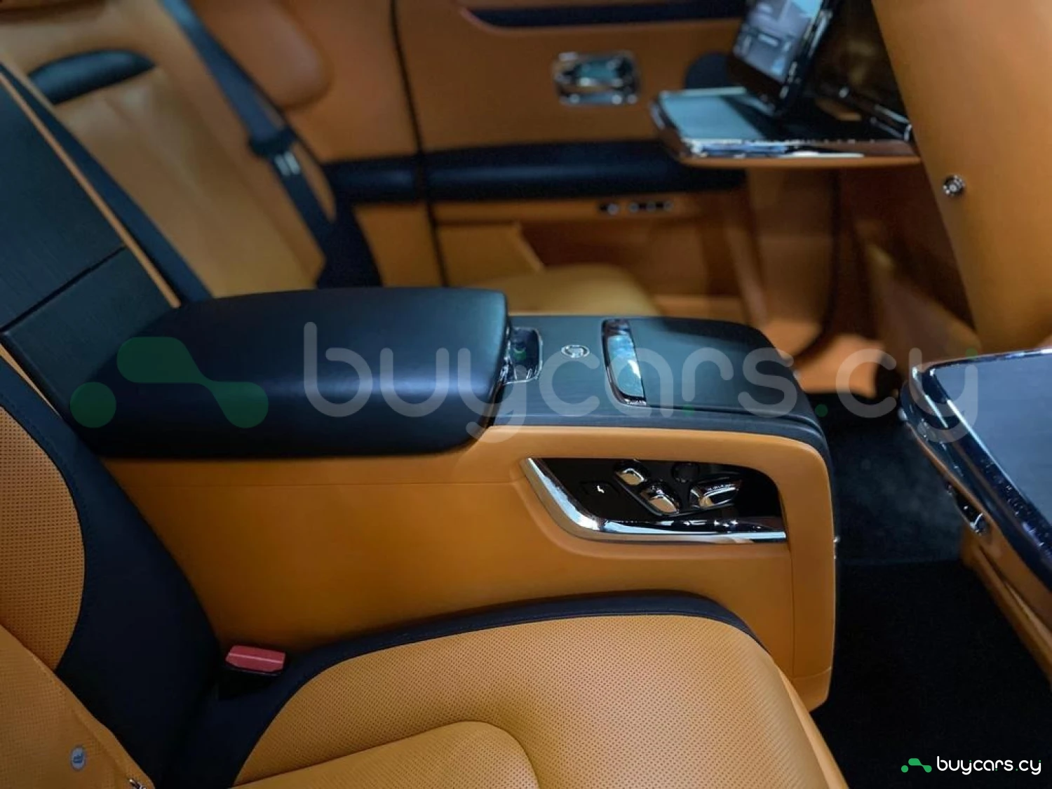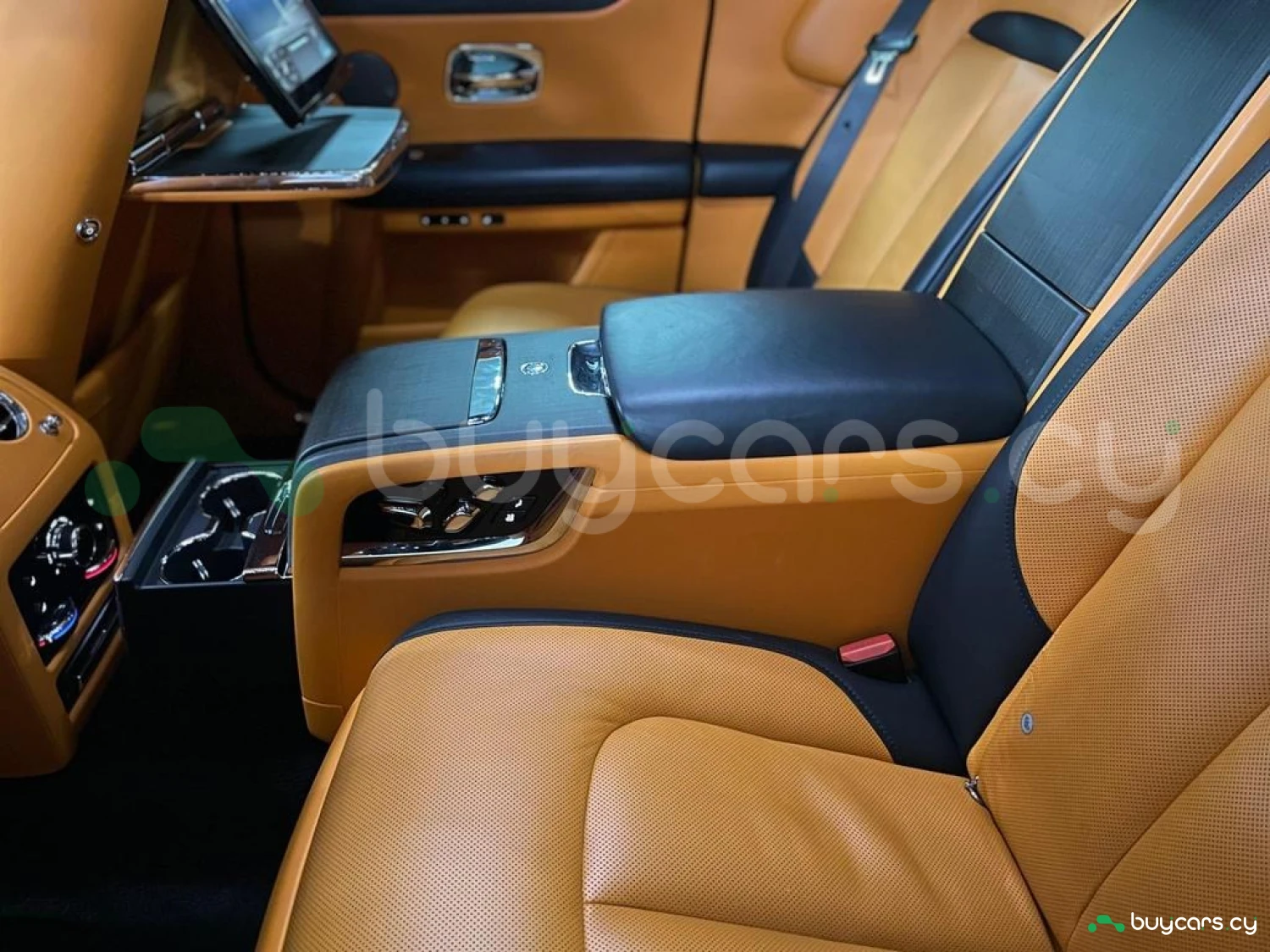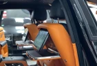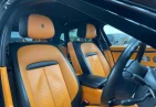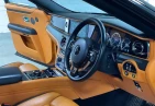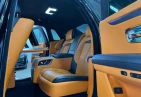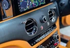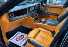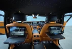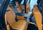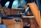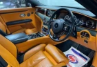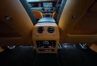 Интерьер: Этот Rolls-Royce оформлен в Mono Interior Environment (дополнительная опция) с кожаным салоном Commission Collection - Armagnac (дополнительная опция), дополненным черной обшивкой потолка и ковриками с глубоким ворсом. Охлаждающий отсек Central Cool Chamber (дополнительная опция) добавляет эксклюзивности. Также в салоне есть раскладные столики (дополнительная опция), бесшумно закрывающаяся багажная дверь и подстаканники спереди и сзади.