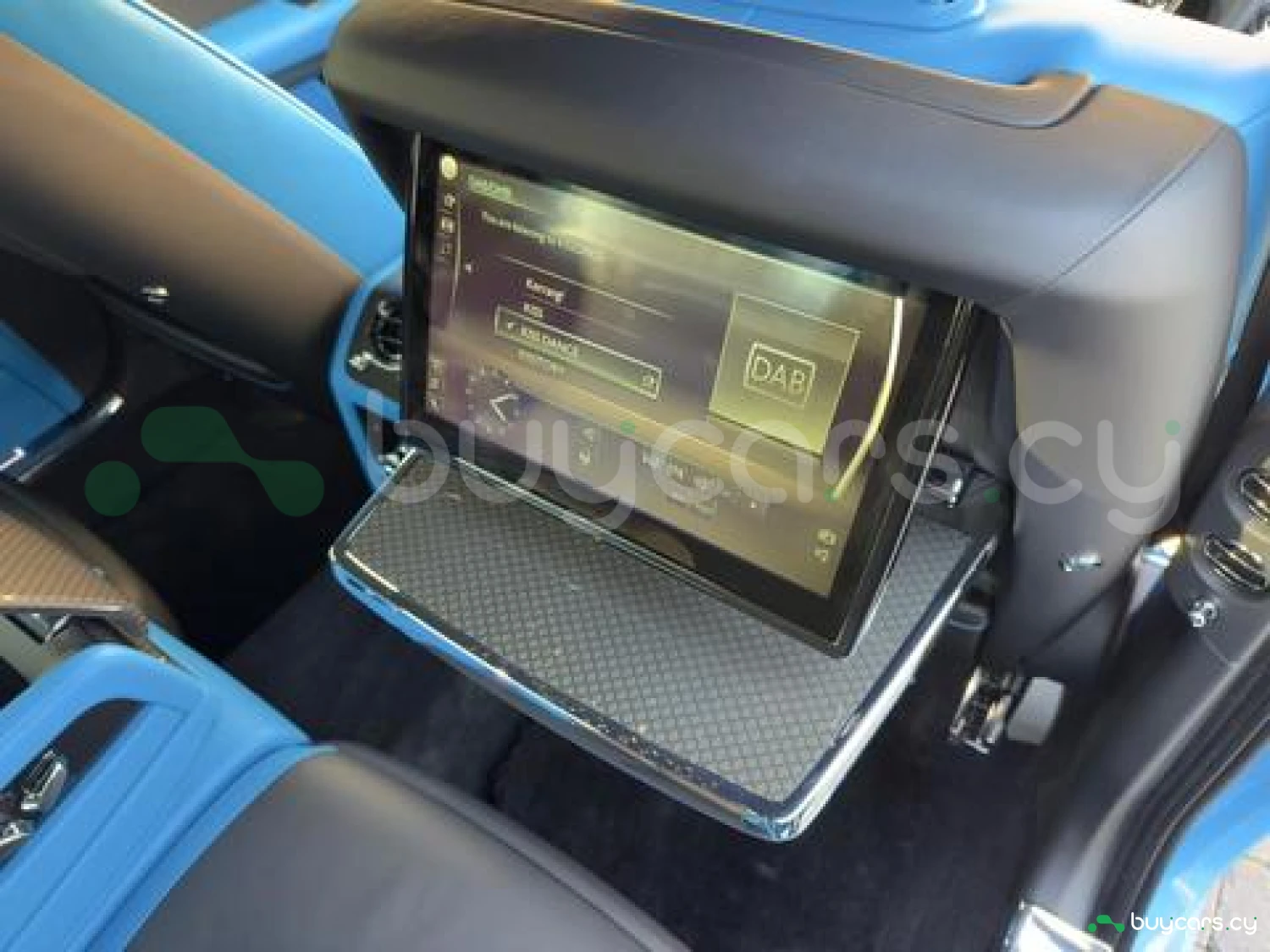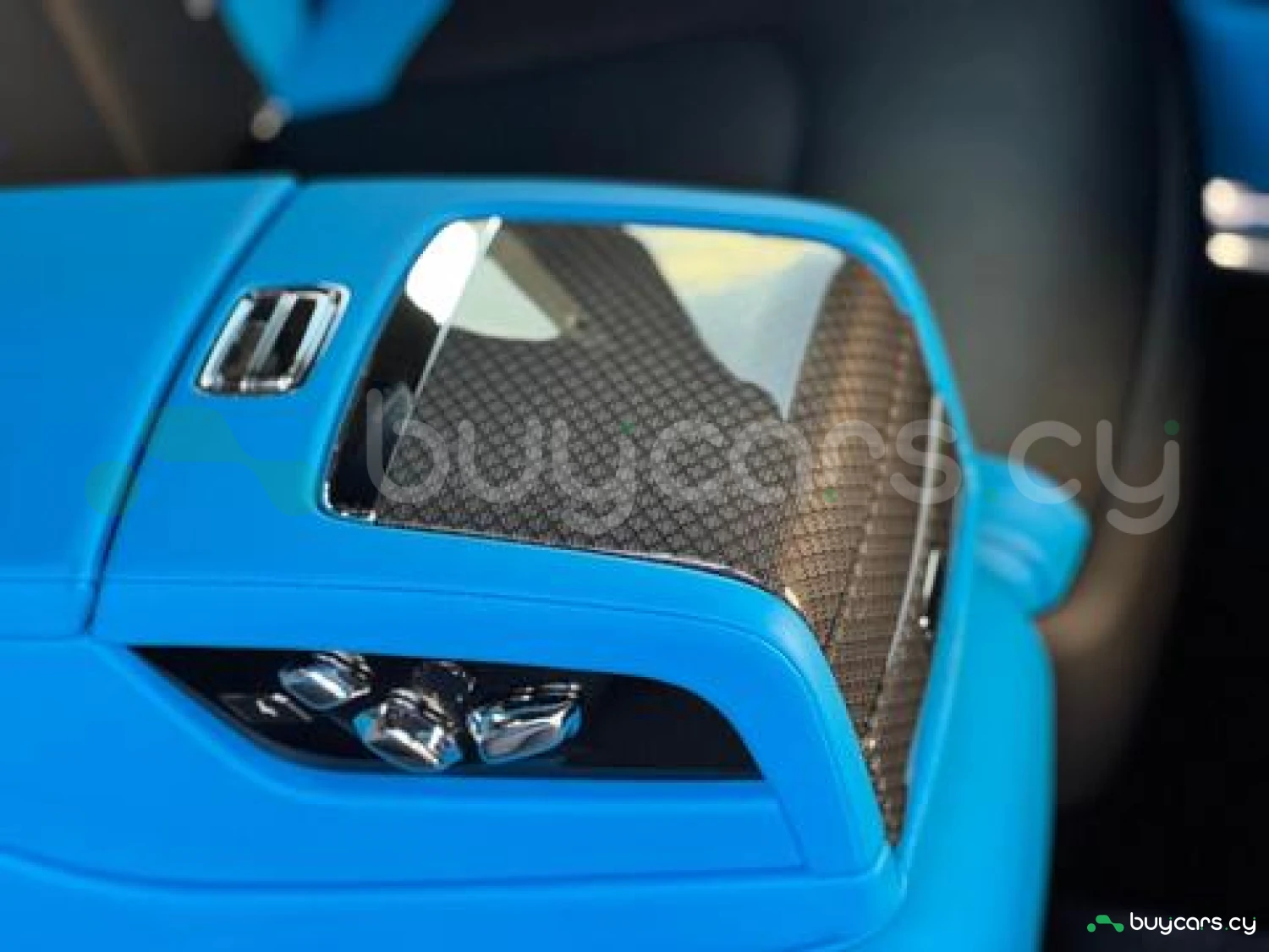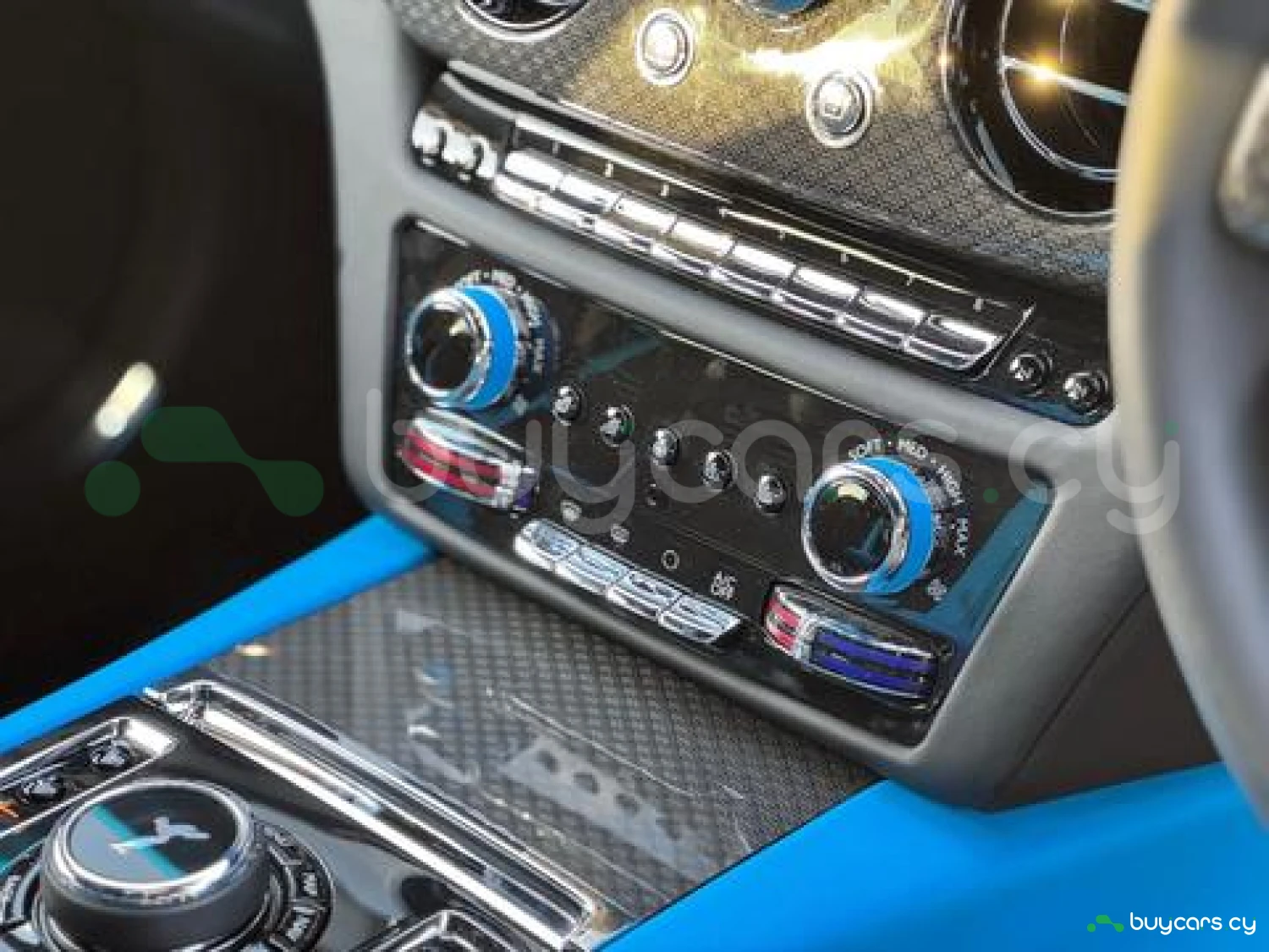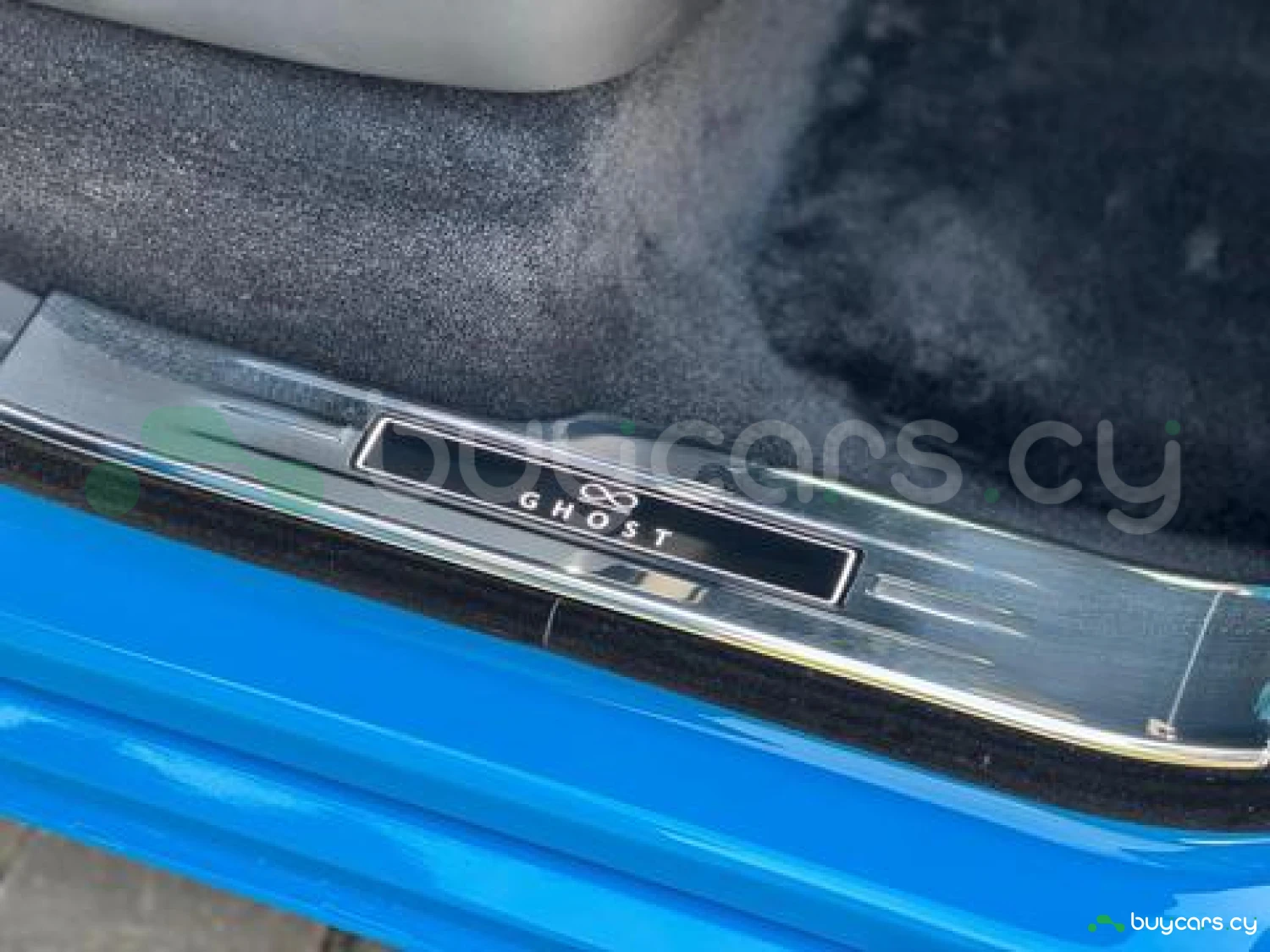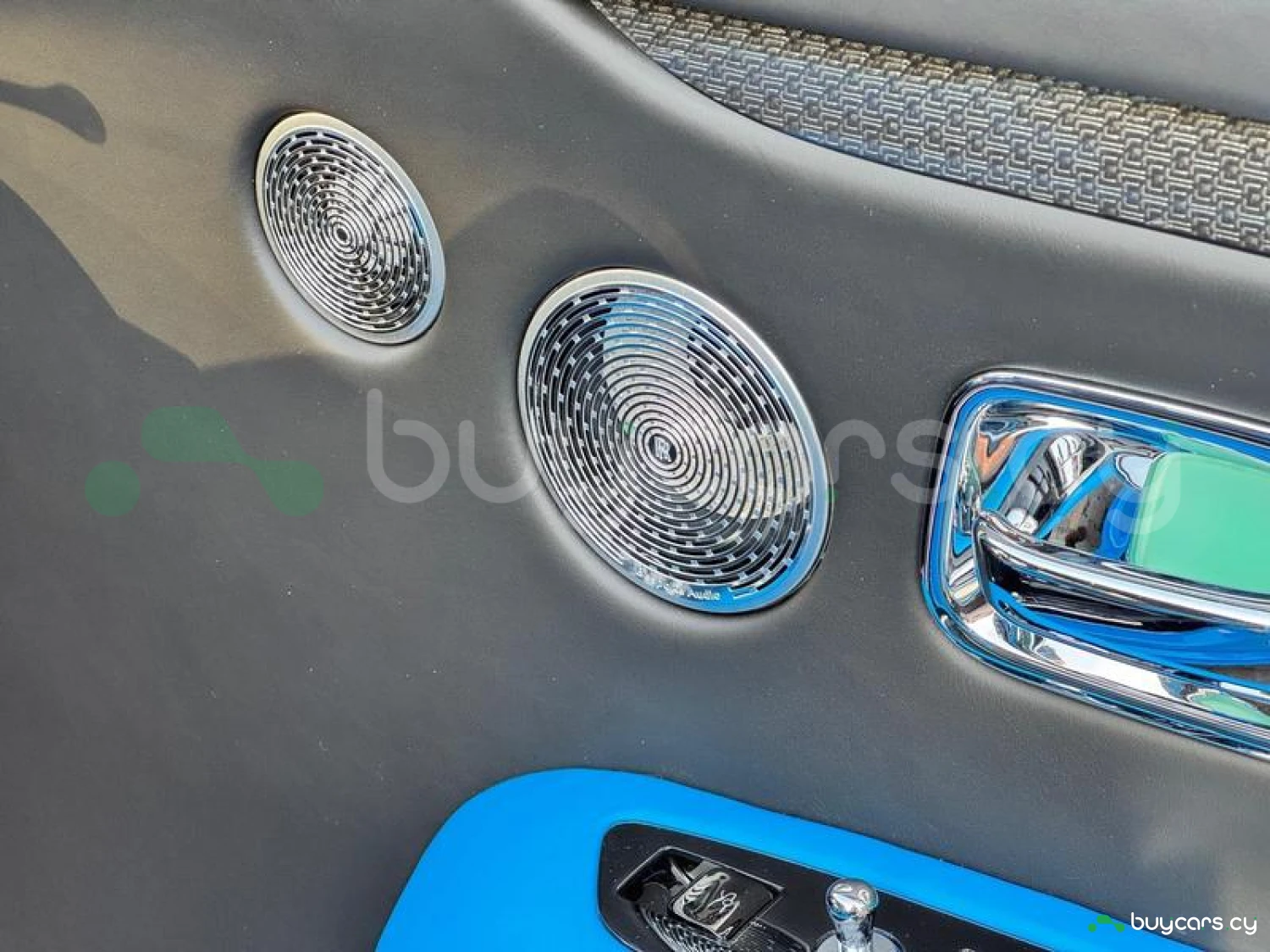 Интерьер: Черная кожа (основная отделка), кожа Galileo Blue (вторичная отделка), Rolls-Royce Bespoke Audio, подогрев и вентиляция передних сидений с массажем, подогрев задних сидений, массаж задних сидений, звездный потолок Shooting Star, подсвеченная передняя панель, часы Dynamic Bespoke, RR Monogram на подголовниках, контрастная прострочка и канты в цвете Galileo Blue, кожаные ручки в Galileo Blue, карбоновый шпон Black Badge Technical Fibre Veneer, расширенная кожаная отделка потолка.