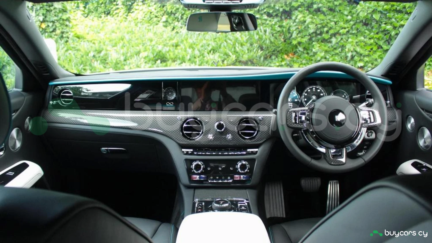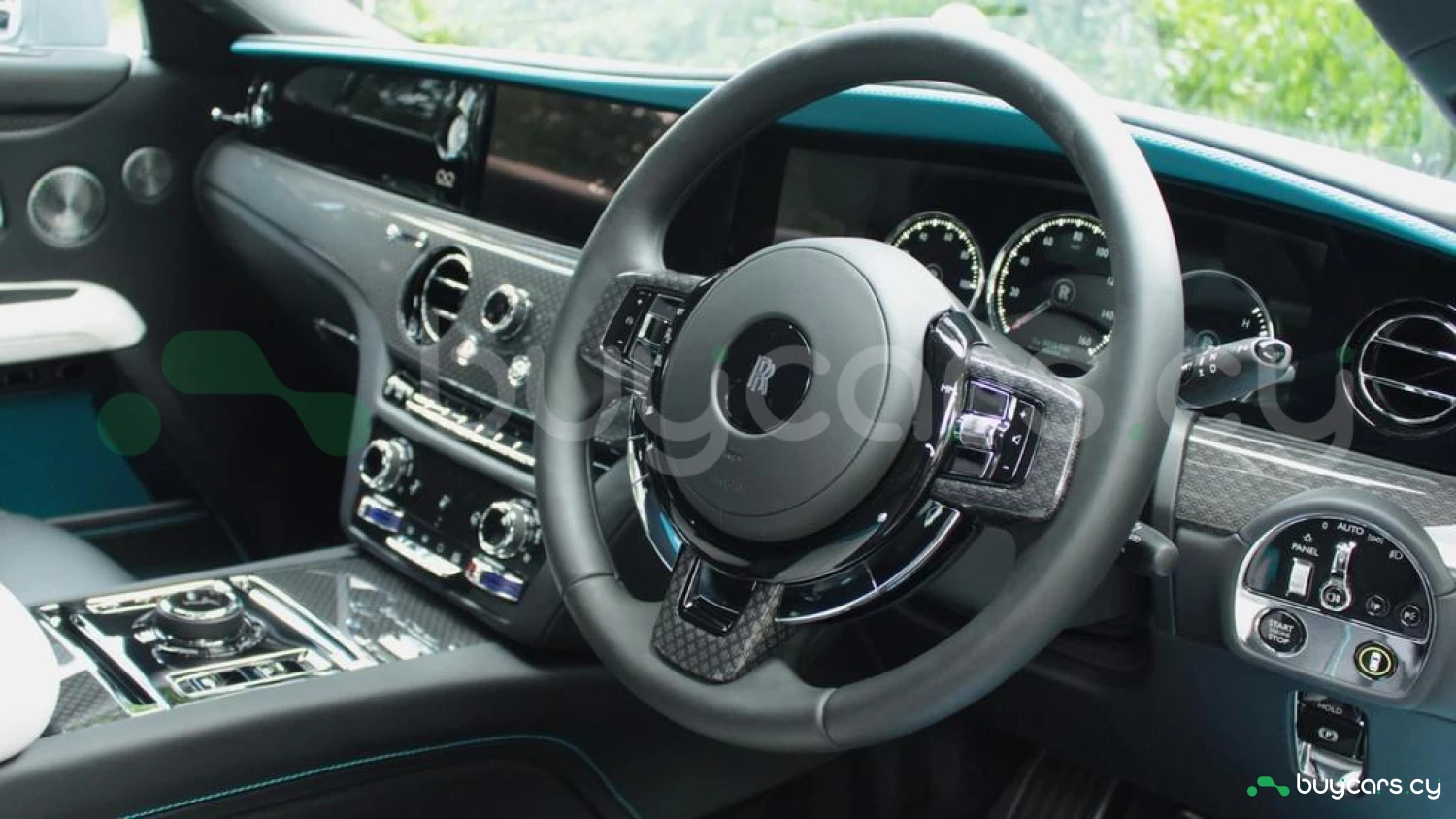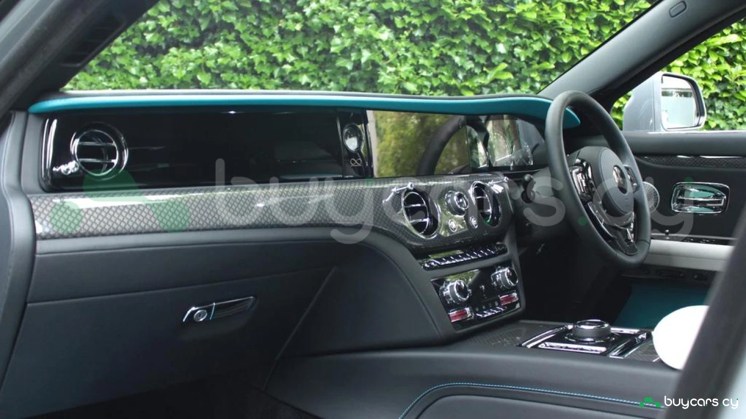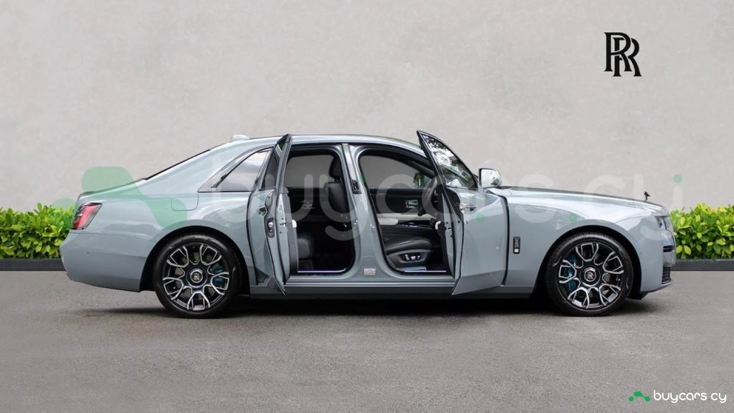 Экстерьер: Кузов в цвете Commission Collection, 21-дюймовые карбоновые композитные диски Black Badge, суппорты тормозов в цвете Turchese, контрастные полосы Turchese на колесных центрах, подсвечиваемая решетка радиатора, темный хромированный логотип Spirit of Ecstasy, одиночная контрастная линия Turchese.