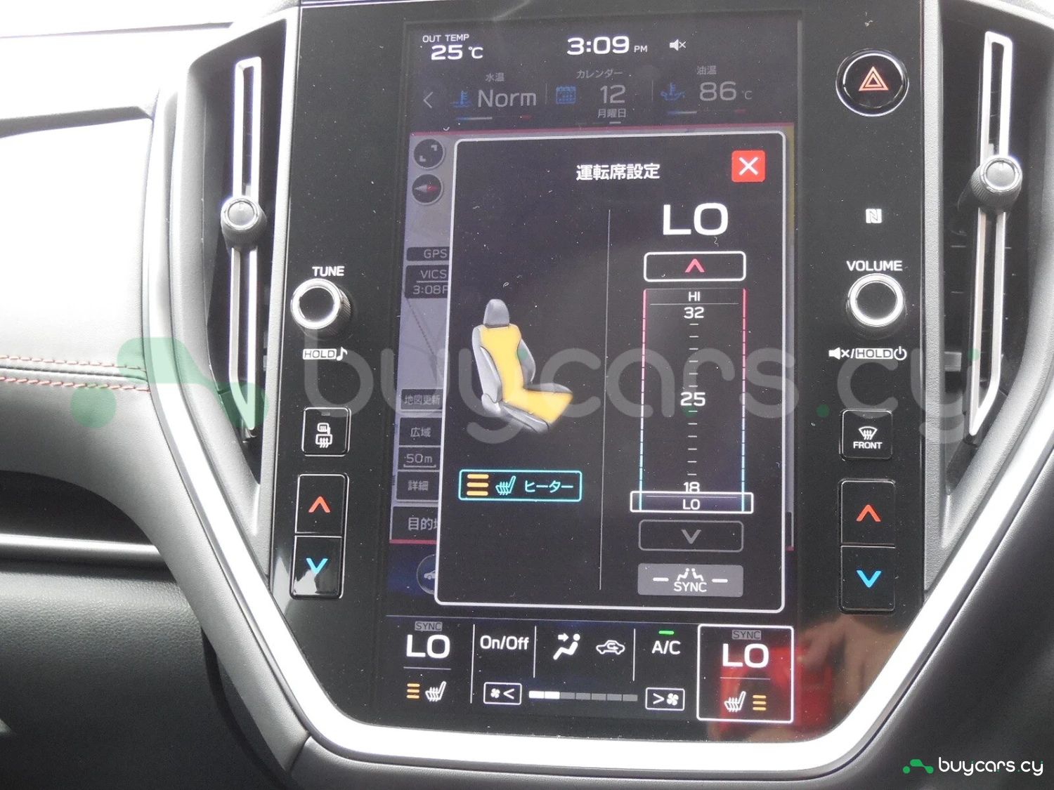 Оснащён системой Subaru EyeSight, включающей адаптивный круиз‑контроль, автоматическое торможение при угрозе столкновения, удержание в полосе, мониторинг «слепых зон», а также камеру заднего вида, парктроники и полный набор подушек безопасности.