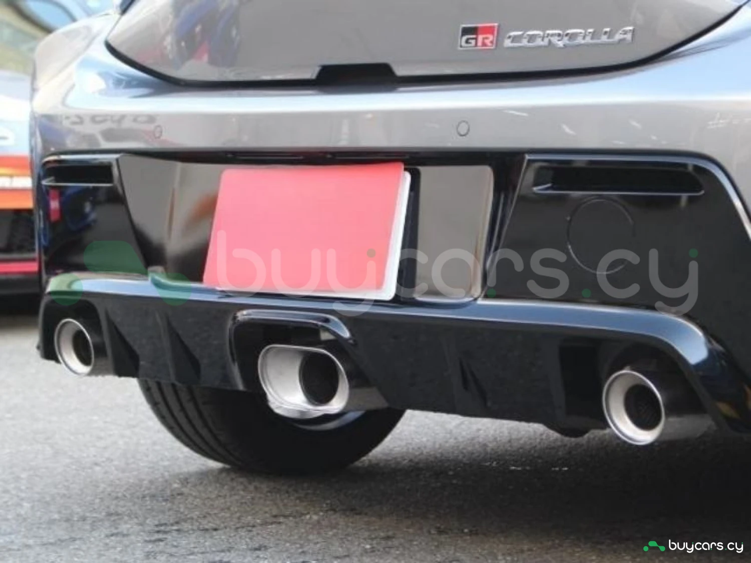 Агрессивный дизайн GR Corolla RZ вдохновлён раллийными автомобилями и подчёркивает её спортивный характер. Массивный передний бампер, аэродинамические элементы кузова и легкосплавные диски усиливают динамичный облик, а светодиодные фары и серый цвет кузова придают автомобилю современный и выразительный стиль.