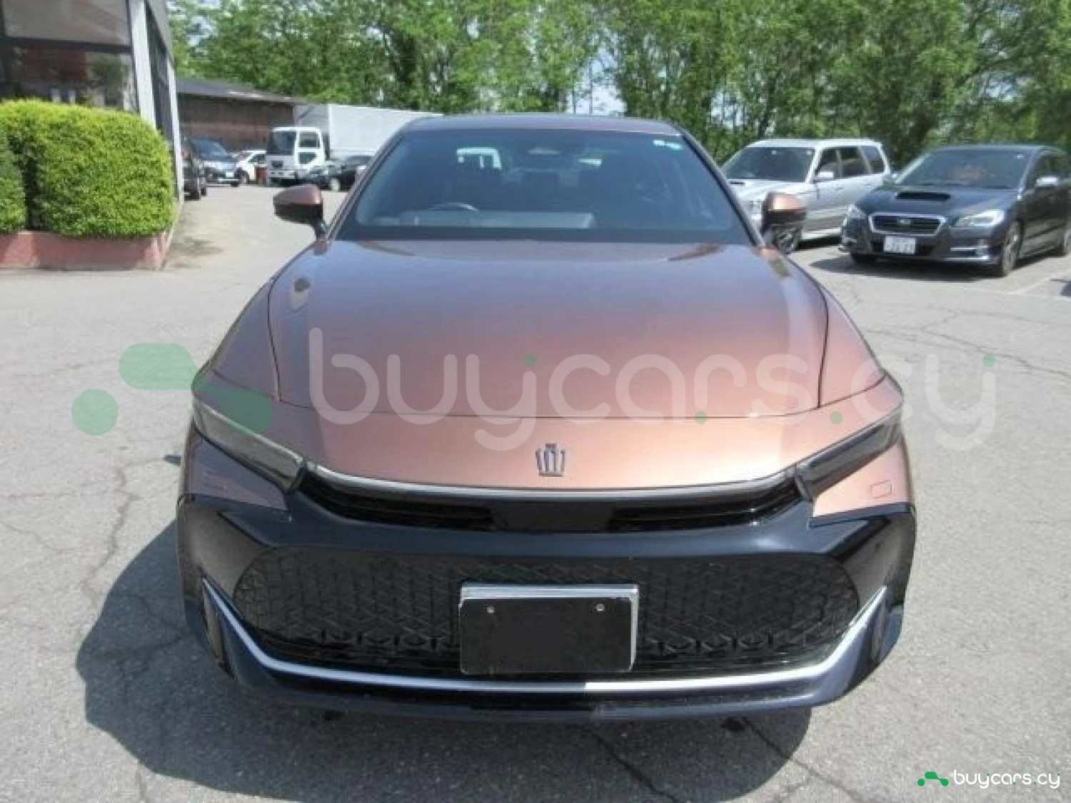 Crown Crossover имеет выразительный передний фасад с широкой решеткой радиатора, фирменной светодиодной подсветкой и крышей с линией, напоминающей купе. Коричневый металлический кузов дополняется хромированными деталями, элегантными легкосплавными дисками и высокой линией боков. Электрический задний багажник и система бесключевого доступа повышают удобство повседневного использования, а пропорции кроссовера обеспечивают как визуальную мощь, так и практичность.