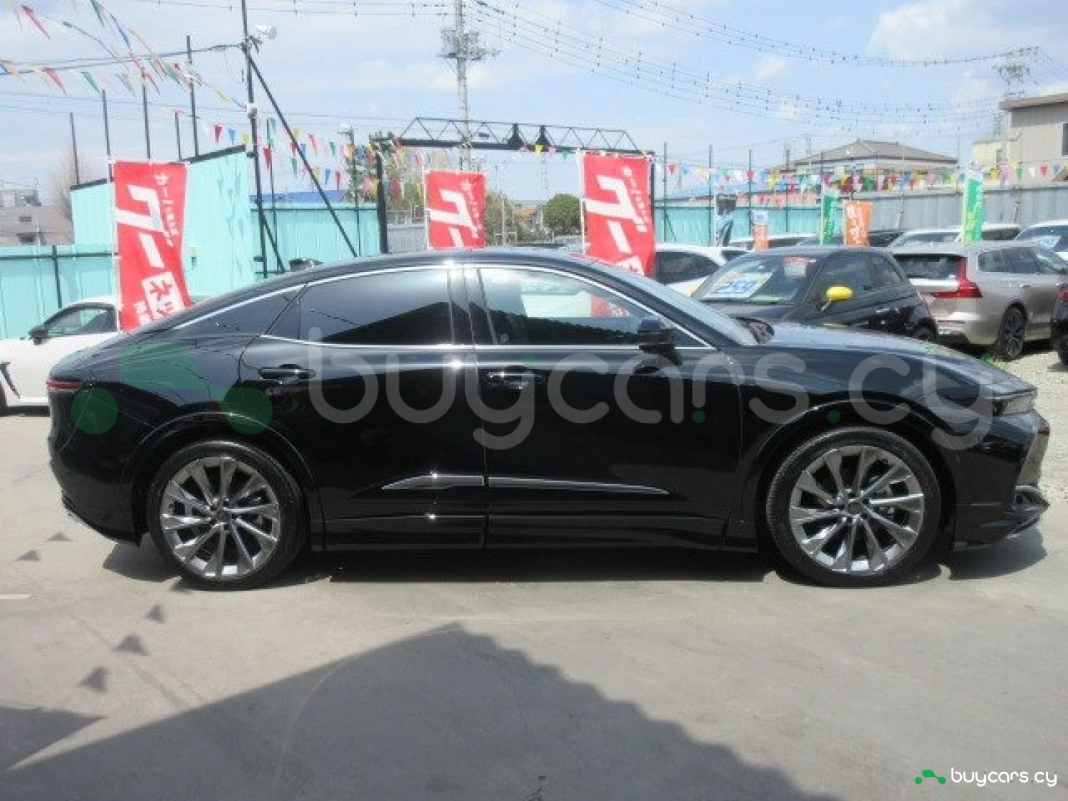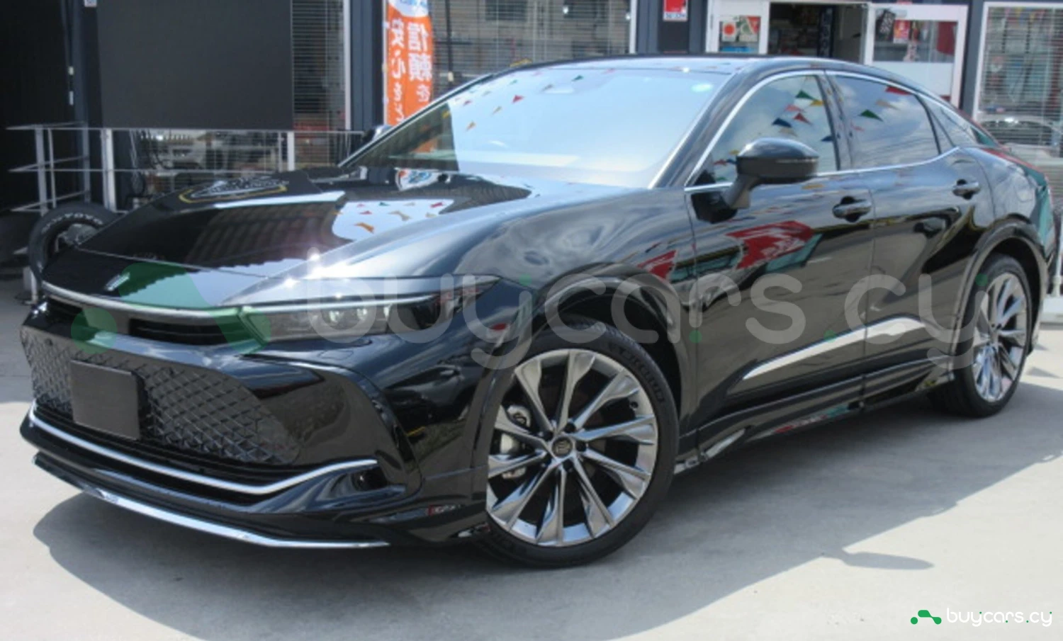 Crown Crossover выделяется выразительным передним фасадом с широкой решеткой радиатора, фирменной светодиодной подсветкой и крышей с линией, напоминающей купе. Перламутровый кузов и хромированные детали придают автомобилю премиальный вид, а легкосплавные диски и высокий клиренс обеспечивают как визуальную мощь, так и практичность для городских и внедорожных условий.